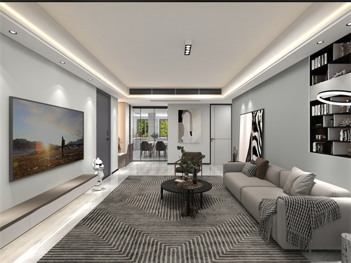 石膏板吊頂、電視背景墻、乳膠漆、墻面鏟除、地面找平、地板/地磚、窗簾、燈具、沙發、茶幾、電視柜、鞋柜、餐桌、餐椅、電視機、空調。
