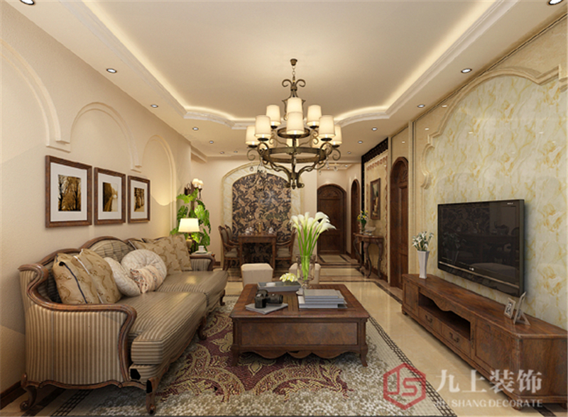 QQ咨詢:本案設計所針對的是一對即將步入婚姻殿堂的年輕人,這處房子只是暫住并不長住,通過與業主溝通中的一些細節,推薦他選擇裝美式風格,由于它造型簡單、明快,而且實用,長久以來受到各國消費者的喜愛。在1998年的家具展中被加入了多功能設計,外觀和用料仍保持自然、淳樸的風格,隱藏設計的抽屜收納了空間,使其看起來更整潔、美觀。就整體而言,美式家具傳達了單純、休閑、有組織、多功能的設計思想,讓家庭成為釋放壓力和解放心靈的凈土。