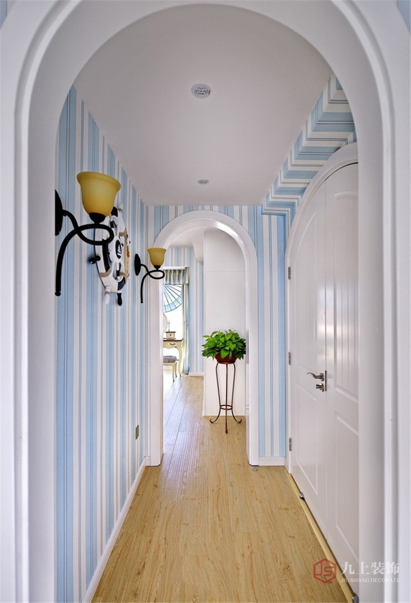 “地中海風(fēng)格”對(duì)中國(guó)城市家居的最大魅力,來(lái)自其純美的色彩組合。這套裝修案例顏色以藍(lán)與白為主,在裝飾方面融入了多種海洋元素,還有弧形鏡子和拱形門(mén)的應(yīng)用,極具地中海特色。