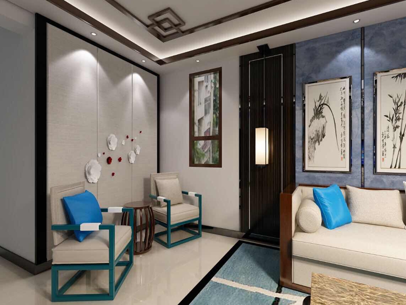 本方案整體設計以新中式風格為主,設計中將現代元素和中國傳統元素相結合,體現了中國式的古典美,一些家具的選配上主要體現了現代風格的簡約美。在家具形態上更加簡潔清秀,同時又打破了傳統中式空間布局中等級、尊卑等文化思想,空間配色上也更為輕松自然。