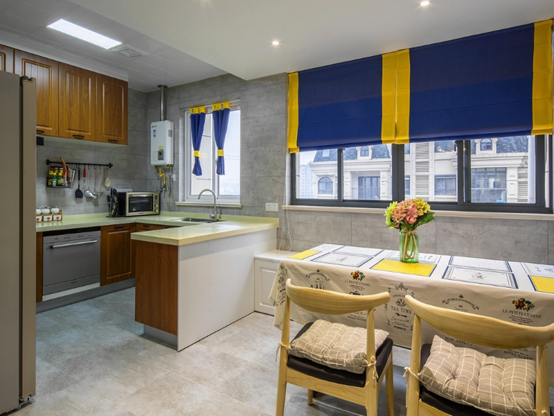 本案開放式的廚房和簡約的餐廳連在一起,方便一家人其樂融融的做飯、吃飯。