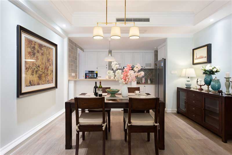 整體采用簡約的歐式風格,搭配清新的美式窗簾,中提一白色為主色調。清新簡約,大方簡潔,充滿了美式的優雅。