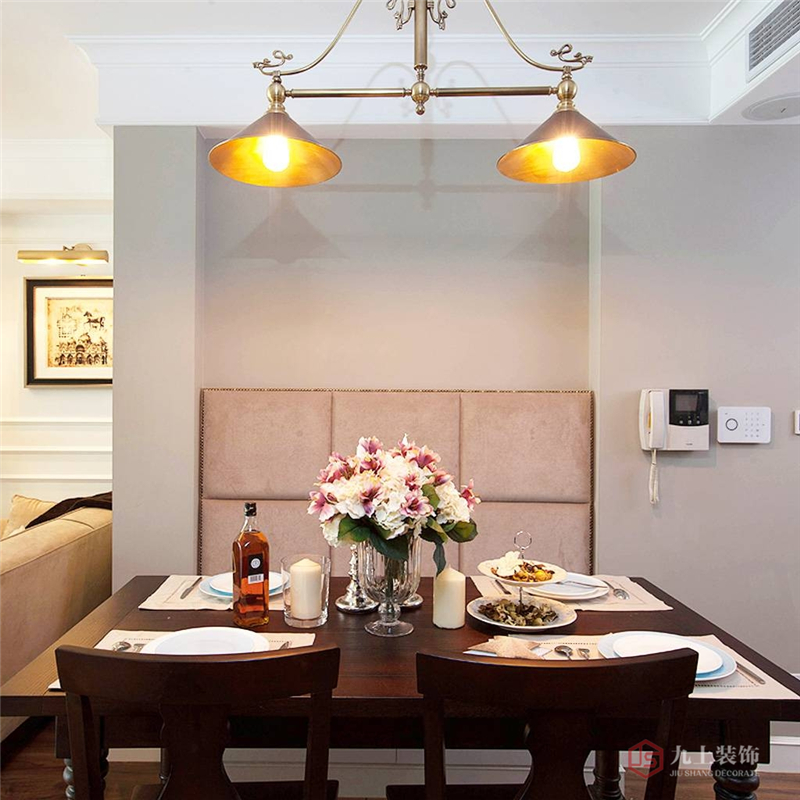 餐廳設(shè)計了一面卡座,這樣歪打正著的設(shè)計倒讓餐廳很好的融入客廳中,并且?guī)е唤z輕松的鄉(xiāng)村氣息